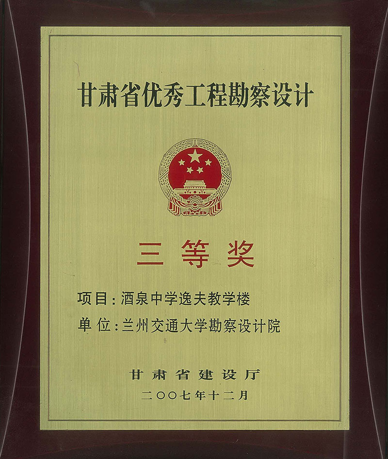 2007年甘肅省優(yōu)秀工程勘察設(shè)計(jì)三等獎(jiǎng)