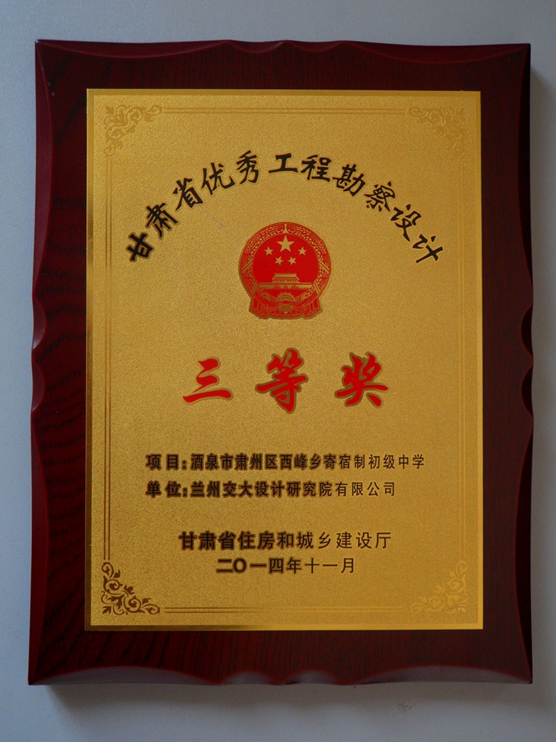 2014年甘肅省優(yōu)秀工程勘察設(shè)計(jì)三等獎(jiǎng)