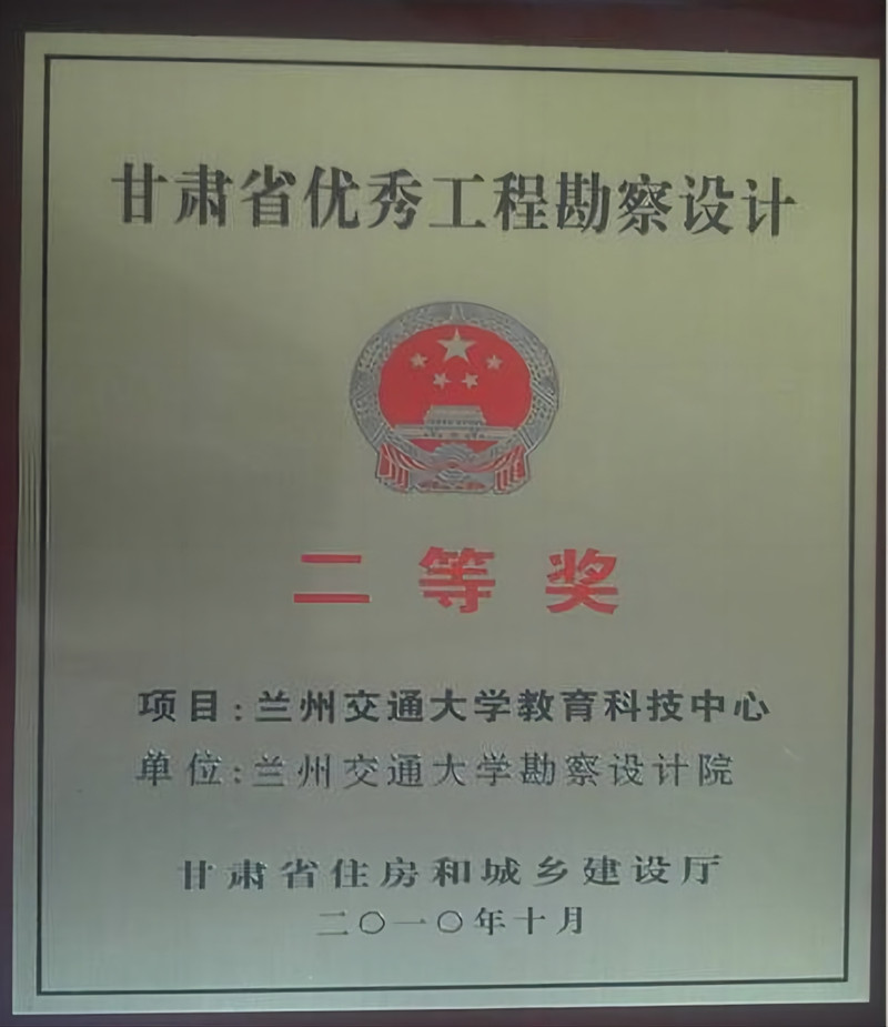 2010年甘肅省優(yōu)秀工程勘察設(shè)計(jì)二等獎(jiǎng)