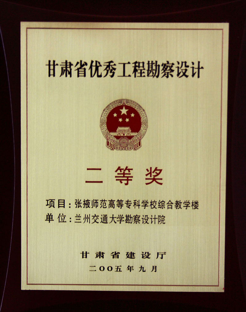 2005年甘肅省優(yōu)秀工程勘察設(shè)計(jì)二等獎(jiǎng)