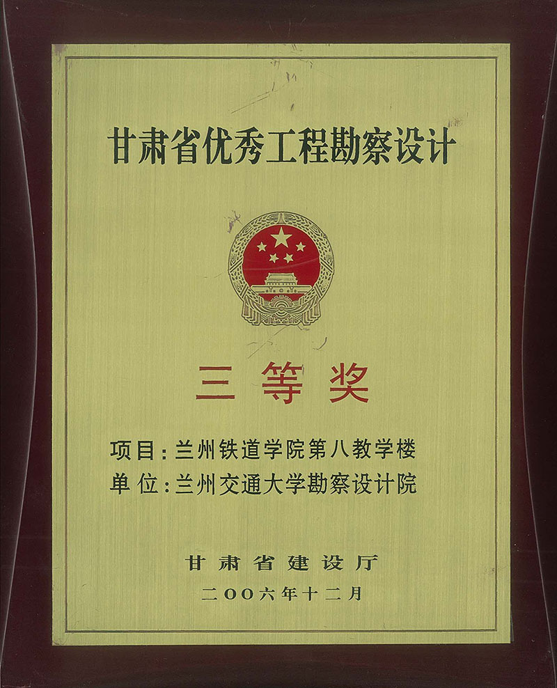 2006年甘肅省優(yōu)秀工程勘察設(shè)計(jì)三等獎(jiǎng)