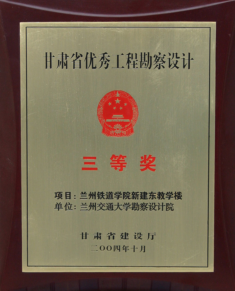 2004年甘肅省優(yōu)秀工程勘察設(shè)計三等獎