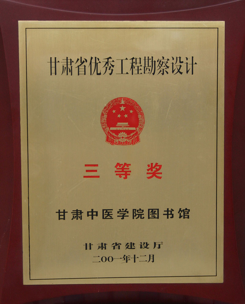 2001年甘肅省優(yōu)秀工程勘察設(shè)計三等獎