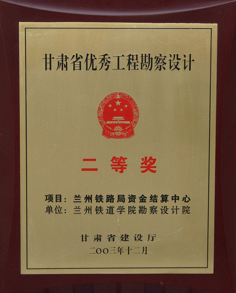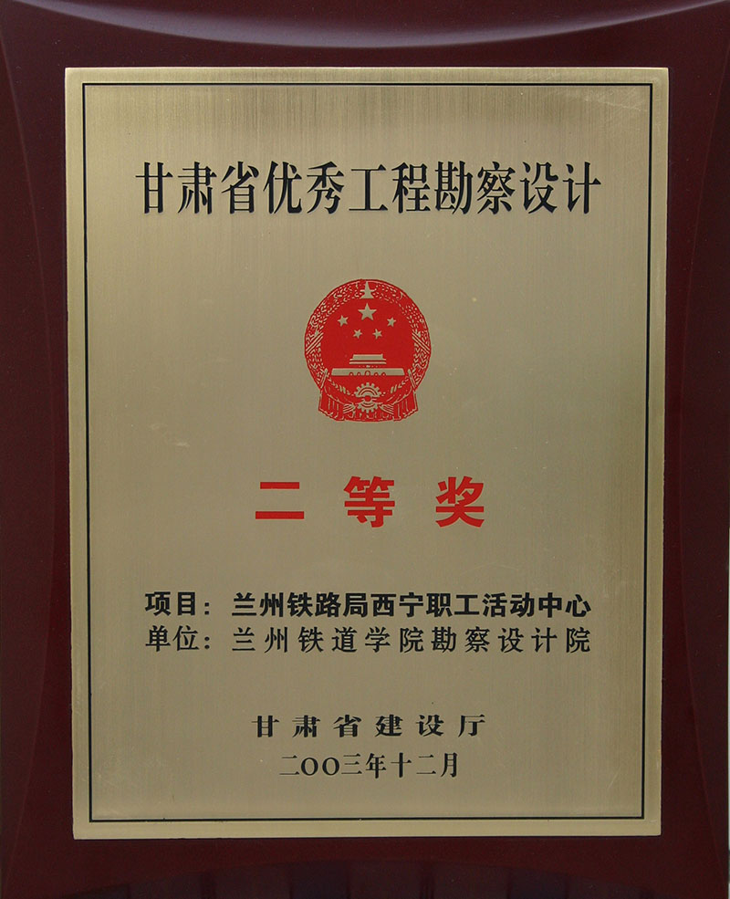 2003年甘肅省優(yōu)秀工程勘察設(shè)計二等獎