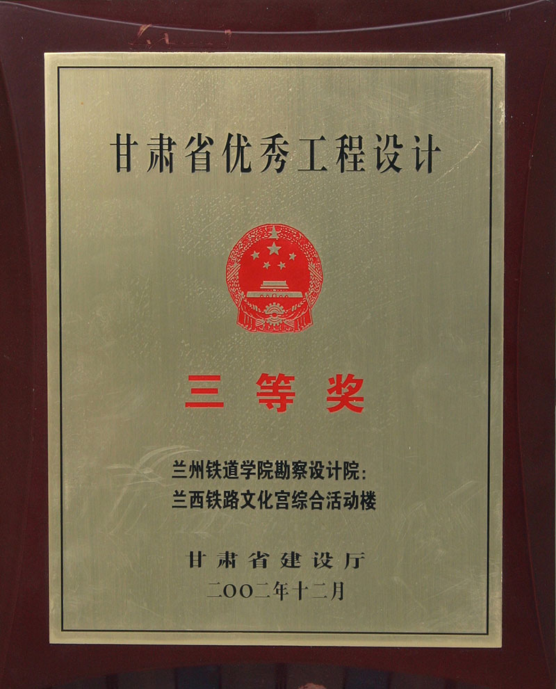 2002年甘肅省優(yōu)秀工程設(shè)計三等獎