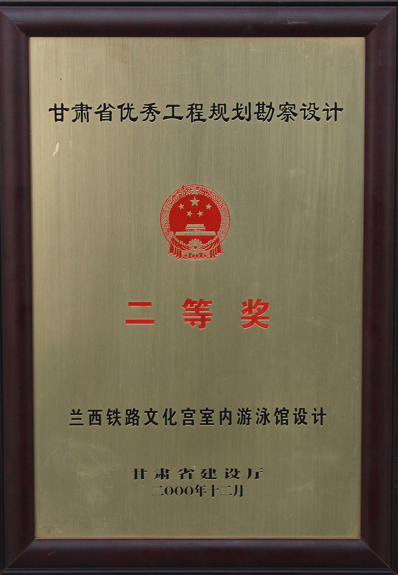 2000年甘肅省優(yōu)秀工程規(guī)劃勘察設(shè)計二等獎