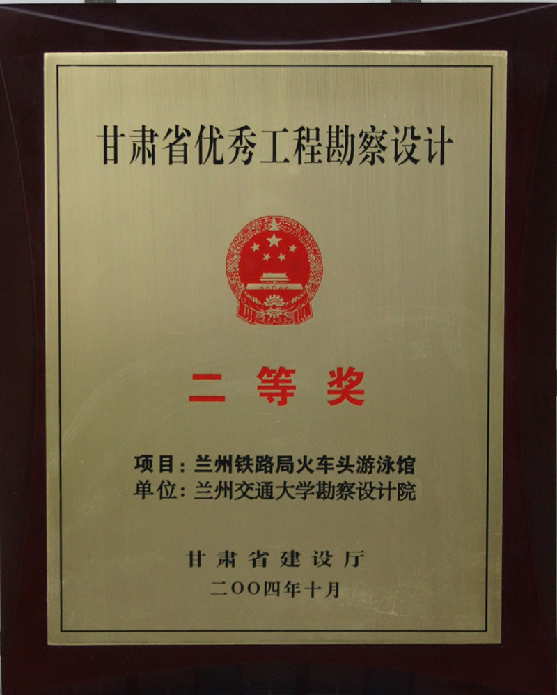 2004年甘肅省優(yōu)秀工程勘察設(shè)計二等獎