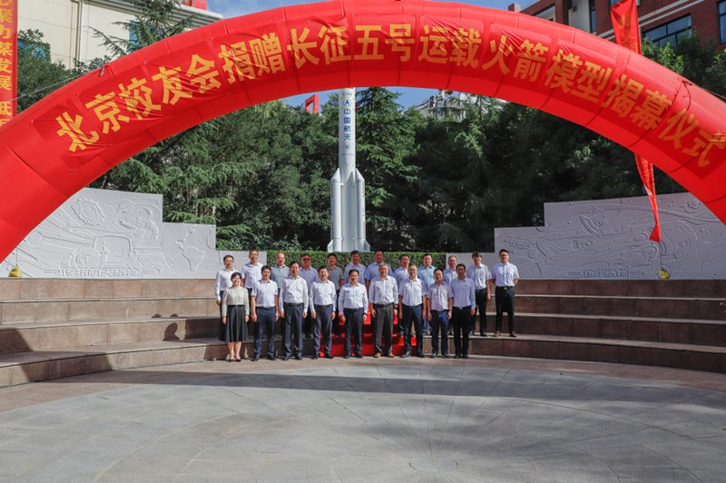 北京地區(qū)校友會(huì)捐贈(zèng)長(zhǎng)征五號(hào)火箭模型揭幕儀式在我校天佑園廣場(chǎng)舉行。作為此次廣場(chǎng)改造的設(shè)計(jì)單位,公司董事長(zhǎng)唐勇軍受邀出席。