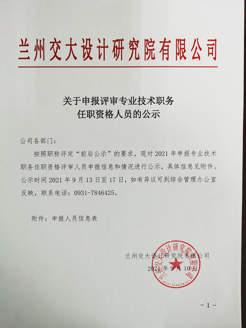 關(guān)于申報評審專業(yè)技術(shù)職務(wù)任職資格人員的公示